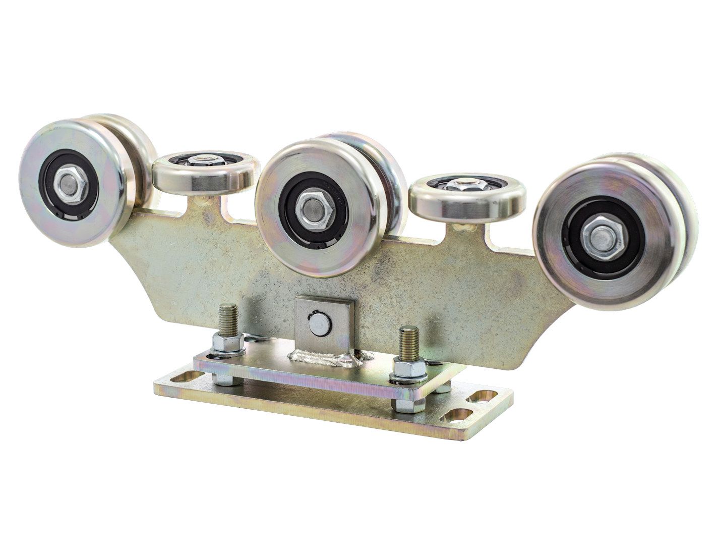 Precyzyjnie wykonany wózek wahliwy, 8-rolkowy, do bramy przesuwnej do 1200 kg, o świetle wjazdu 4-10 metrów. Wózek z platformą regulacyjną. Wózek do szyny 90 × 100 × 4 mm oraz 90 × 100 × 5 mm. 90 mm to szerokość, 100 mm to wysokość szyny. Prosimy o kontakt w celu ustalenia wymiaru ścianki. Wózki składane są na potrzeby nabywcy.